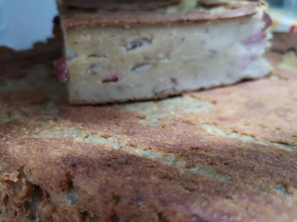 Tak przygotowane ciasto wlewamy do wysmarowanej tłuszczem i obsypanej bułką tartą brytfanki. Wkładamy do piekarnika rozgrzanego do 180 C na 45-50 minut co najmniej 75 minut w zależności jak bardzo ma być przypieczona skórka. Czas pieczenia zależy od formy – im grubsza, tym dłużej można piec, ale trzeba pamiętać, aby odpowiednio regulować temperaturę – tak aby nie doprowadzić do sytuacji, gdy wierzch będzie spieczony a środek niedopieczony.