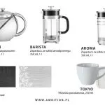Lumen to dzbanek dostępny w trzech praktycznych pojemnościach od 0,7 do 1,1 litra, wykonany ze szkła hartowanego oraz wysokiej jakości stali nierdzewnej. Jego klasyczna forma w połączeniu ze zgrabnie wplecionymi elementami nowoczesnego designu spodoba się najbardziej wymagającym gustom. Podobnie jak zaparzacze Aroma i Barista wykonane z odpornego na wysoką temperaturę szkła żaroodpornego. Całość dopełnia nowy zestaw kawowy uzupełniający kolekcję porcelany Tokyo. Kolekcja Tokyo od AMBITION jest połączeniem minimalistycznego wzornictwa i nowoczesnej prostej formy. Kształt talerzy zbliżony do kwadratu z delikatnie zaznaczonym rantem podkreśla niepowtarzalny charakter zastawy. Elegancji i lekkości dodaje ciepły odcień bieli.
